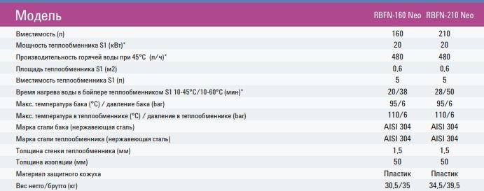 Серия RISPA NEO - линейка включает бойлеры объёмом 160 и 210 литров. Все модели серии оснащаются магниевым анодом и допускают установку электрического ТЭНа. Секционная теплоизоляция эффективно удерживает температуру воды и упрощает сервисное обслуживание.