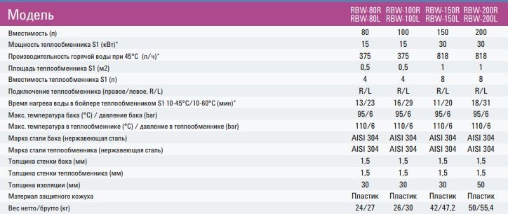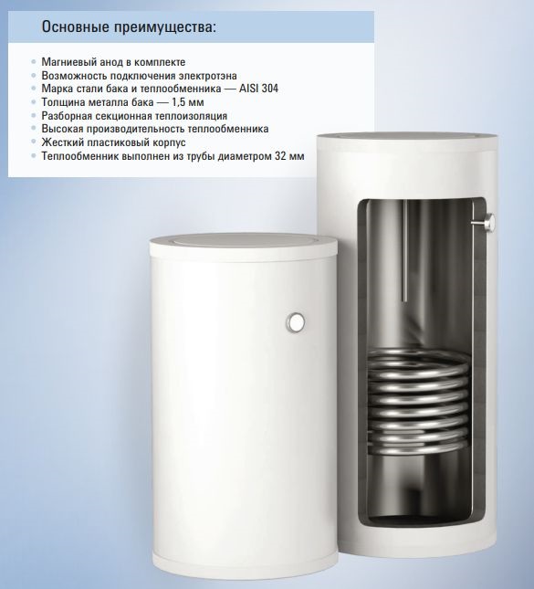 - Марка стали бака и теплообменника — AISI 304