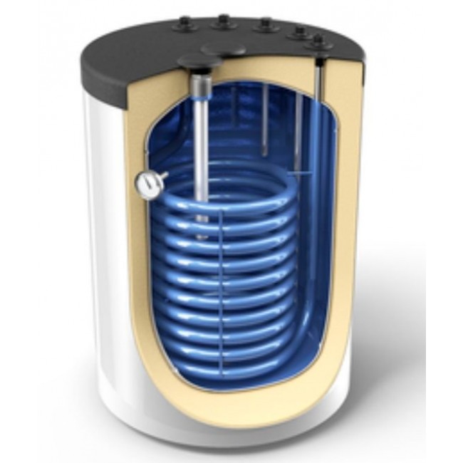 - Для дополнительной защиты косвенного бойлера от известковых отложений в верхней части водонагревателя установлен магниевый анод. Благодаря защитным функциям магниевого анода срок эксплуатации бойлера увеличен на 50%.