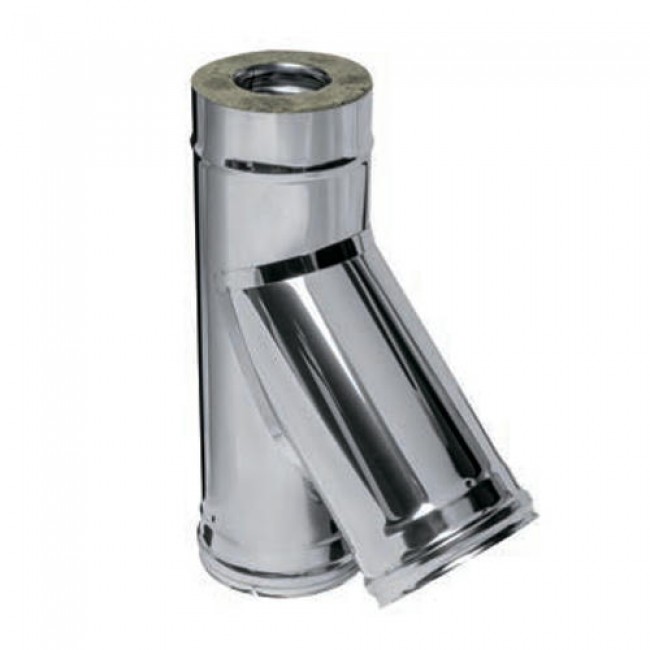 Сэндвич-тройник 135° используется для изменения направления дымового канала на угол 45°, в качестве очистного элемента и облегчает обслуживание дымохода.