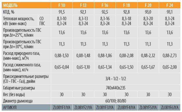 | Производительность горячего водоснабжения, л/мин | ∆Т=30°С – 11,3; ∆Т=25°С – 13,7 |
