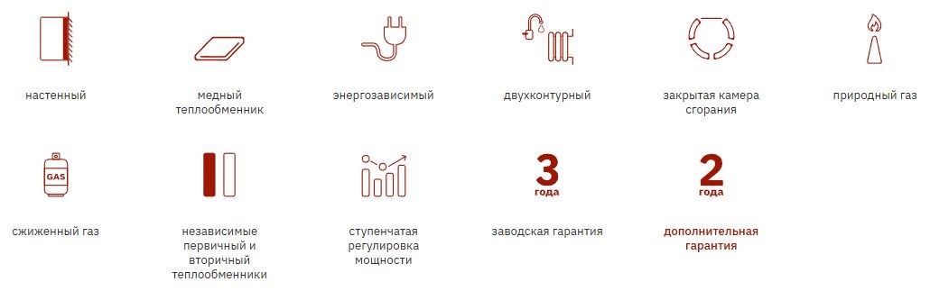 - Объёмная камера сгорания — полное сгорание газа, высокая эффективность и долгий срок службы