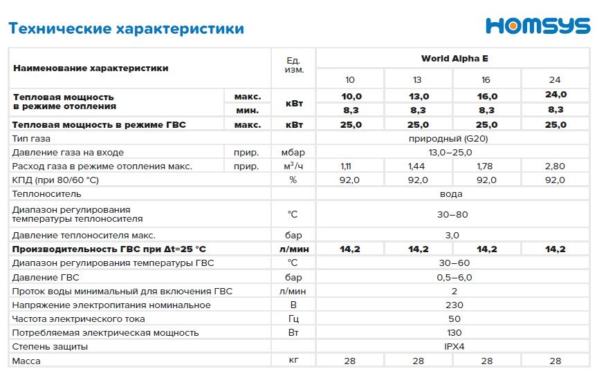 Современные двухконтурные настенные газовые котлы Kiturami World Alpha E24 предназначены для отопления и водоснабжения небольших домов и квартир. Котлы относятся к категории “котлы с закрытой камерой сгорания” или как их еще называют “турбированные газовые котлы”. Это значит, что выброс продуктов сгорания (дыма и пара) происходит принудительно, встроенным в котел дымососом (турбиной), через коаксиальные дымоходы специальной конструкции 60/100 мм. или с организацией разделенного дымохода 80/80. Котлы Kiturami World Alpha E 24 отличаются компактностью и простотой установки. Модель Kiturami World Alpha E 24 имеет раздельные теплообменники, первичный теплообменник на отопление и пластинчатый теплообменник для приготовления горячей воды (ГВС). Для удобства пользователя, котел оснащен дисплеем для простого и понятного управления котлом.