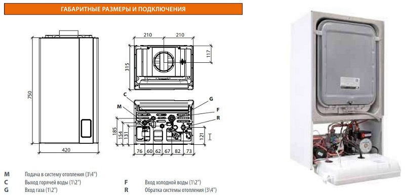 Настенный газовый котёл FONDITAL FORMENTERA CTN 24 (двухконтурный котёл 24 кВт с открытой камерой сгорания)