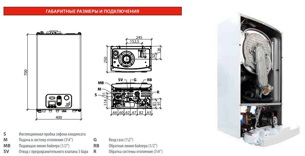 - Первичный теплообменник из нержавеющей стали и термополимеров — высокая устойчивость к коррозии и долговечность