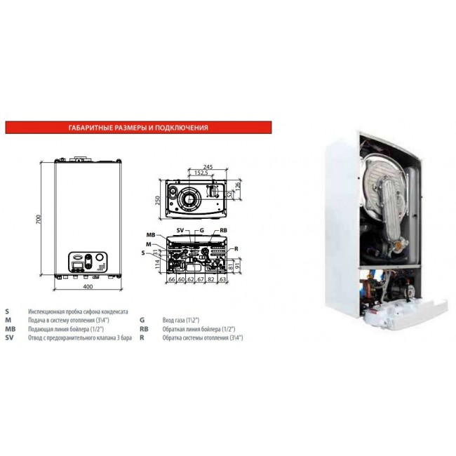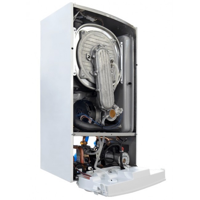 - Первичный теплообменник из нержавеющей стали и термополимеров — высокая устойчивость к коррозии и долговечность