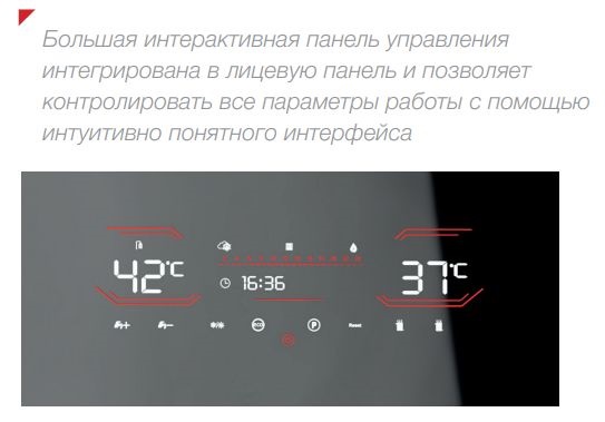 - большая интерактивная панель управления интегрирована в лицевую панель и позволяет контролировать все параметры работы с помощью интуитивно понятного интерфейса;