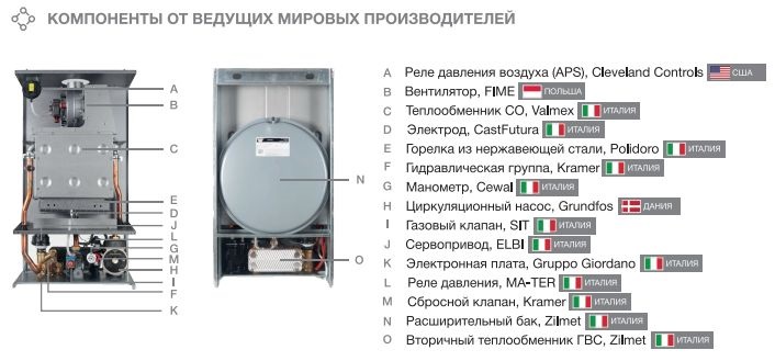 - Все компоненты котла имеют высокое качество и поставляются европейскими производителями (Italy)