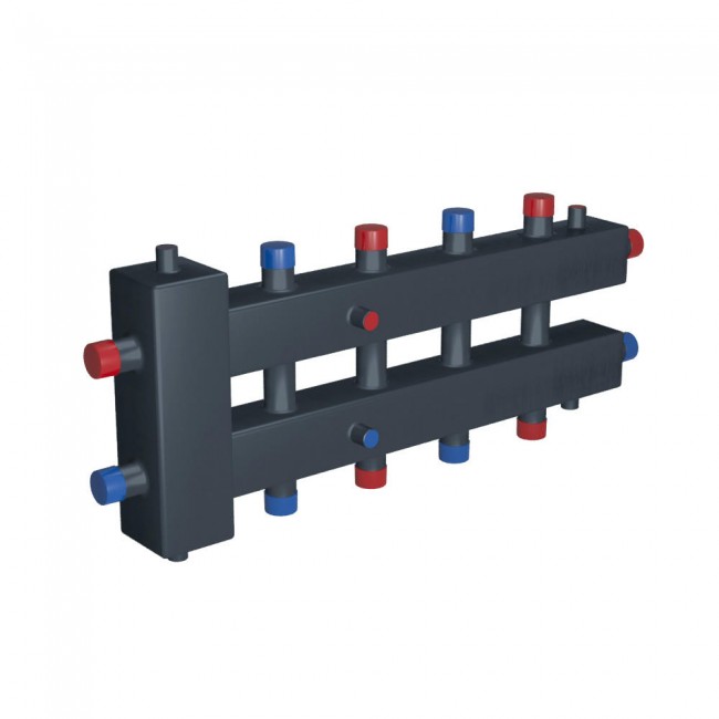 Коллектор с гидрострелкой на 5 контуров ГРУ+КМГ60-5ВУ от Российского производителя RISPA — является гидравлическим разделительным узлом, который совмещен в единую конструкцию с коллектором модульного типа. Общая схема — горизонтальная, гидрострелка может обслуживать котел мощностью до 60 кВт. Потребители подключаются универсально (сверху, снизу и сбоку: схема 2+2+1).
