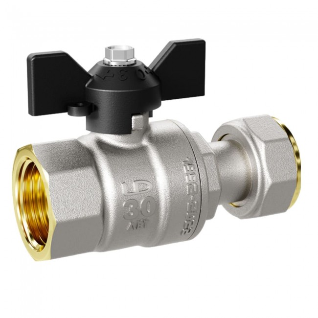 Кран шаровой LD с накидной гайкой, 3/4, бабочка с никелевым покрытием предназначен для быстрого и многократного перекрытия потока