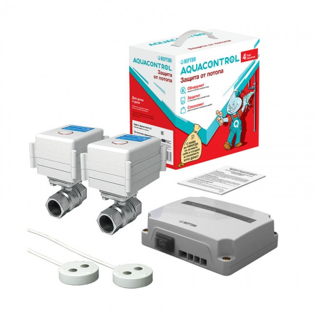 Система контроля протечки воды Neptun AquaControl предназначена для своевременного обнаружения и локализации протечек воды в системах водоснабжения и отопления. Система заблокирует подачу воды до устранения причин протечки и проинформирует о возникшей аварии звуковым и световым сигналами