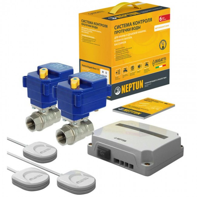 Система контроля протечки воды Neptun Bugatti Base предназначена для своевременного обнаружения и локализации протечек воды в системе водоснабжения, отопления и охранных системах жилых домов, коттеджей, административных зданий, а также в системах диспетчеризации. Система заблокирует подачу воды до устранения причин протечки и проинформирует о возникшей аварии звуковым и световым сигналами.