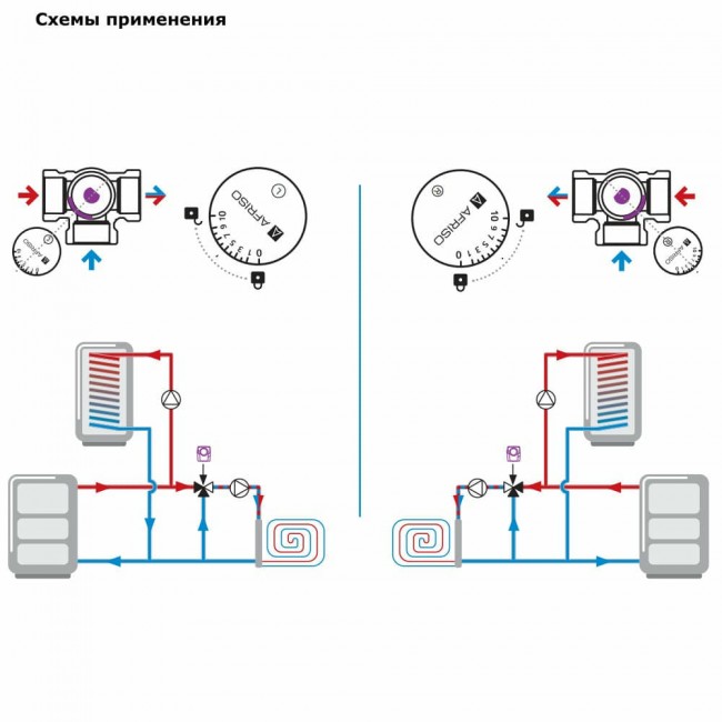 3-ходовые смесительные клапаны ARV Vario ProClick предназначены для установки в системах отопления и охлаждения. Обычно они устанавливаются на подаче или обратке системы к источнику тепла. Они смешивают поток теплоносителя в нужных пропорциях для получения требуемой температуры. Они также могут выступать в качестве переключающих клапанов между двумя частями системы.