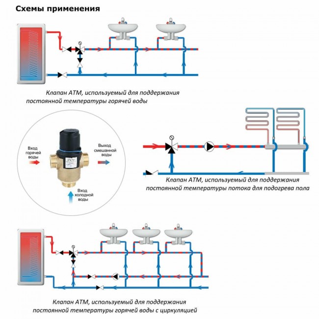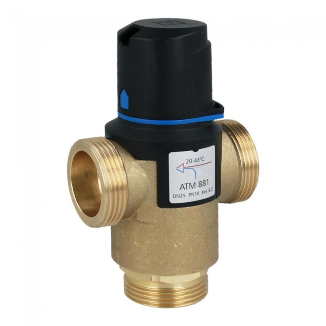 Термостатический смесительный клапан ATM - применяется в системах горячего водоснабжения и напольного отопления для смешивания двух потоков воды и обеспечения на выходе постоянную заданную температуру воды.