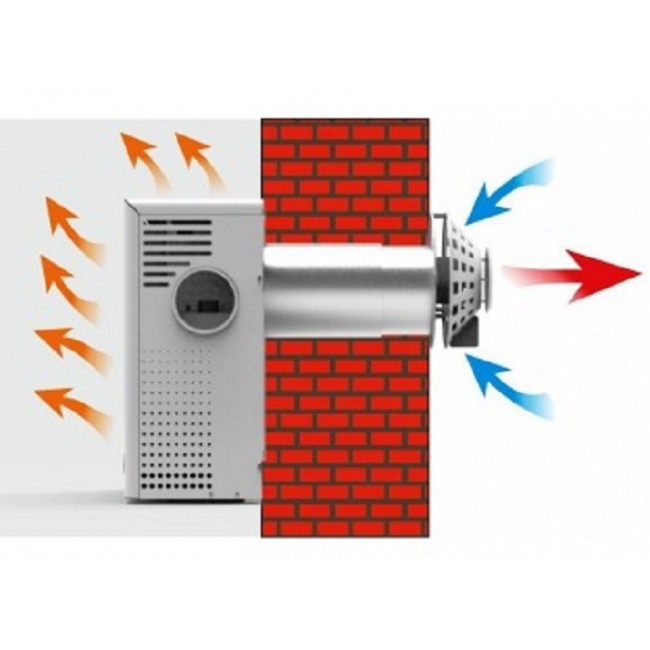 Герметичная камера сгорания надёжно защищает от попадания продуктов сгорания в помещение.
