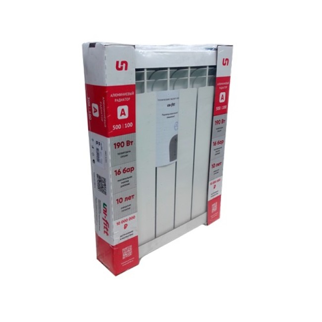Секции радиатора Uni-Fitt изготавливаются методом литья под высоким давлением из прочного алюминиевого сплава АК12М2, который отличается высокой механической прочностью и устойчивостью к нагрузкам. После сборки батарея проходит антикоррозийную обработку и покрывается стойкой порошковой краской, защищающей поверхность от повреждений и продлевающей срок службы радиатора.