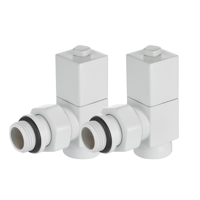 Набор дизайн-вентилей Royal Thermo CUBE, угловой (белый) 1/2" (Дизайн серия)