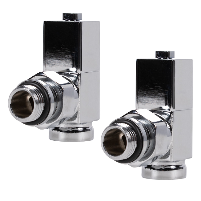Набор дизайн-вентилей Royal Thermo CUBE, угловой (хром) 1/2" (Дизайн серия)