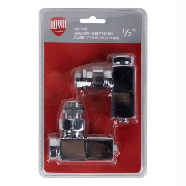 Набор дизайн-вентилей Royal Thermo CUBE, угловой (хром) 1/2"