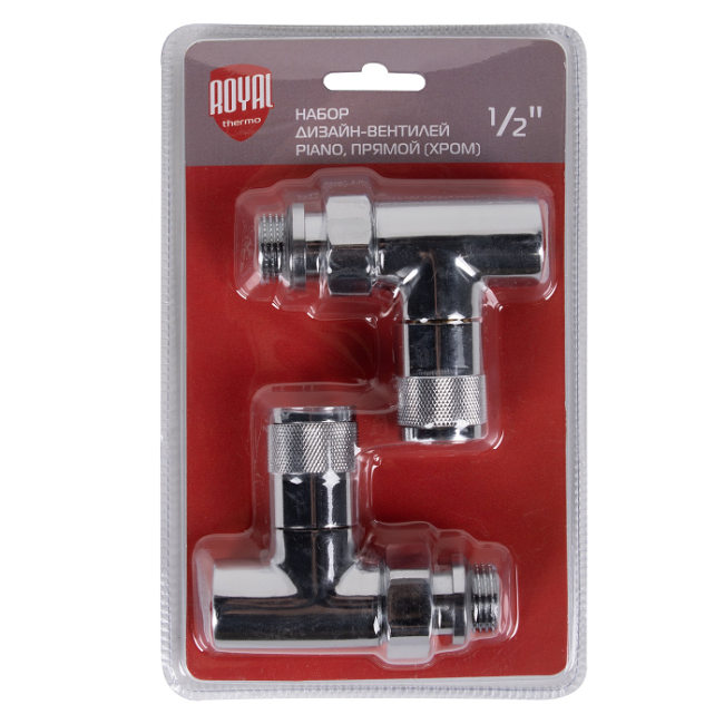 Набор дизайн-вентилей Royal Thermo PIANO, прямой (хром) 1/2"