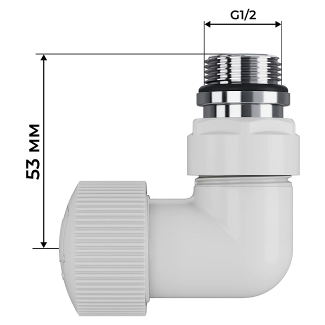 Размер подключения к радиатору 1/2”. К системе отопления набор подключается через монтажную латунную трубку диаметром 15 мм.